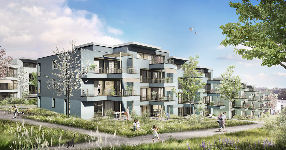 - Neubau 68 Eigentums- und 74 Mietwohnungen