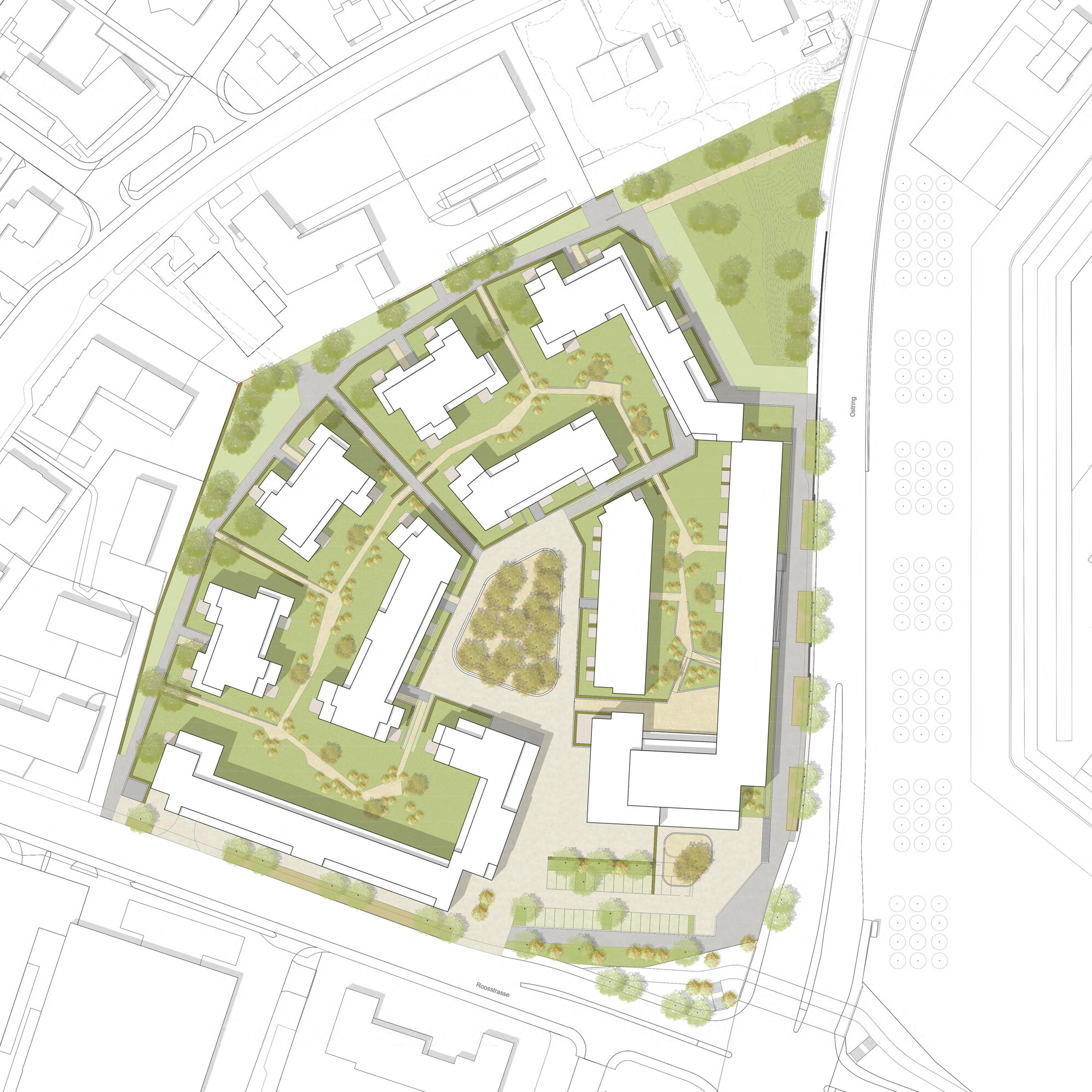 - Neubau 294 Wohnungen, 94 Alterswohnungen, 40 Pflegezimmer, öffentliche Erdgeschossnutzungen